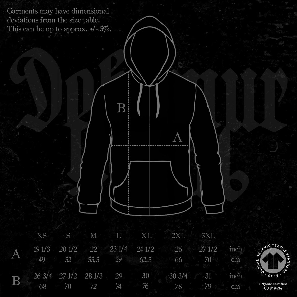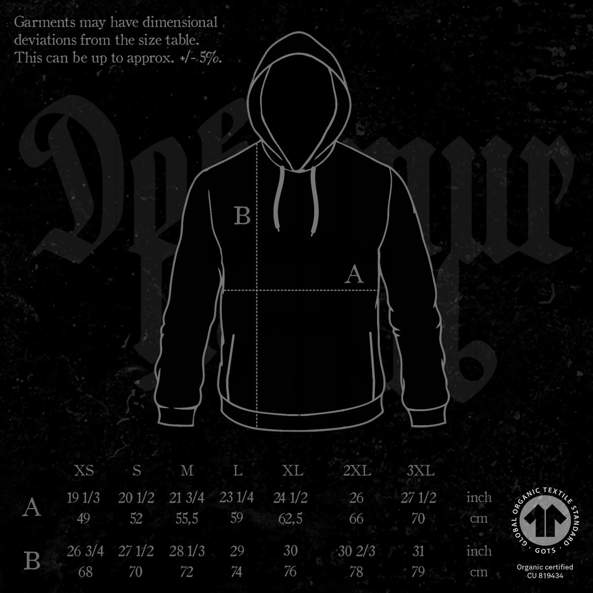 • Printed on high quality 100% organic black hooded sweatshirts. Check images for size chart. Please read our policies (dmp666.bandcamp.com/policies) before you order.